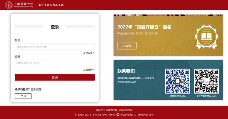 1. 登录报名系统,地址:https://apply.shanghaitech.edu.cn,进入2022年校园开放日报名。